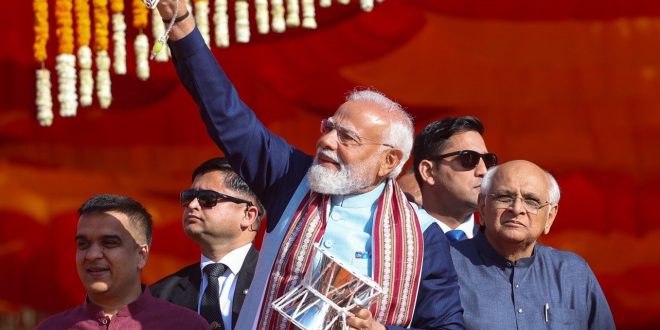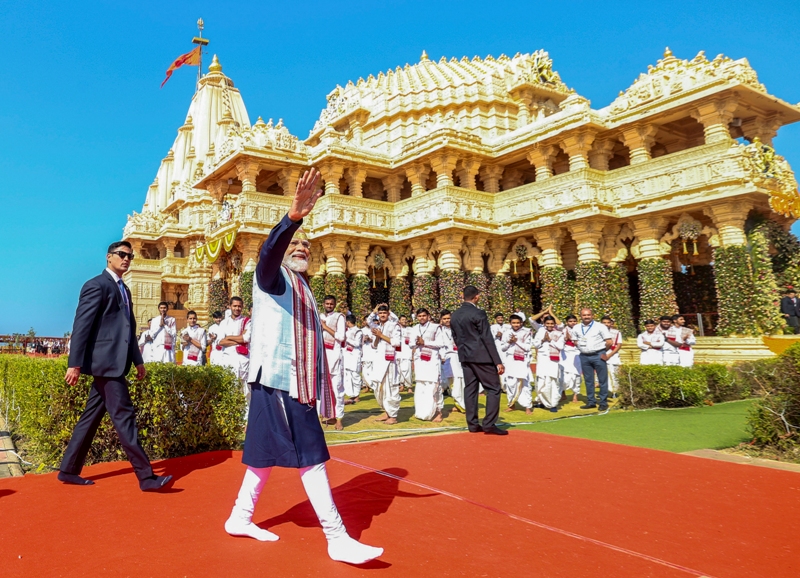प्रधानमंत्री मोदी दो दिवसीय गुजरात दौरे पर शनिवार शाम को सोमनाथ पहुंचे थे। उन्होंने सोमनाथ स्वाभिमान पर्व के अंतर्गत आयोजित इस कार्यक्रम का अवलोकन किया।प्रधानमंत्री ने सोशल मीडिया मंच ‘एक्स’ पर लिखा, “सोमनाथ स्वाभिमान पर्व की शौर्य यात्रा में शामिल होकर अत्यंत गौरवान्वित हूं। इस अवसर पर मंदिर की रक्षा में अपने प्राणों की आहुति देने वाली मां भारती की अनगिनत वीर संतानों को श्रद्धांजलि अर्पित करने का सौभाग्य प्राप्त हुआ। उनका अदम्य साहस और पराक्रम देशवासियों को सदैव प्रेरित करता रहेगा।