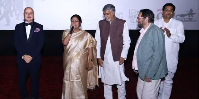 नयी दिल्ली । अभिनेता अनुपम खेर ने बॉलीवुड की मशहूर अदाकारा रेखा के लिए दिल को छू लेने वाला नोट लिखा है। एक कार्यक्रम में रेखा से हुई भावुक मुलाकात के बाद खेर ने उन्हें “शालीनता, सौंदर्य और मिलनसार व्यक्तित्व की जीती-जागती मिसाल” बताया।अनुपम खेर ने बुधवार को सोशल मीडिया मंच से अपने इंस्टाग्राम हैंडल पर फरहान अख्तर अभिनीत फिल्म 120 बहादुर के प्रीमियर से दो तस्वीरें साझा कीं।