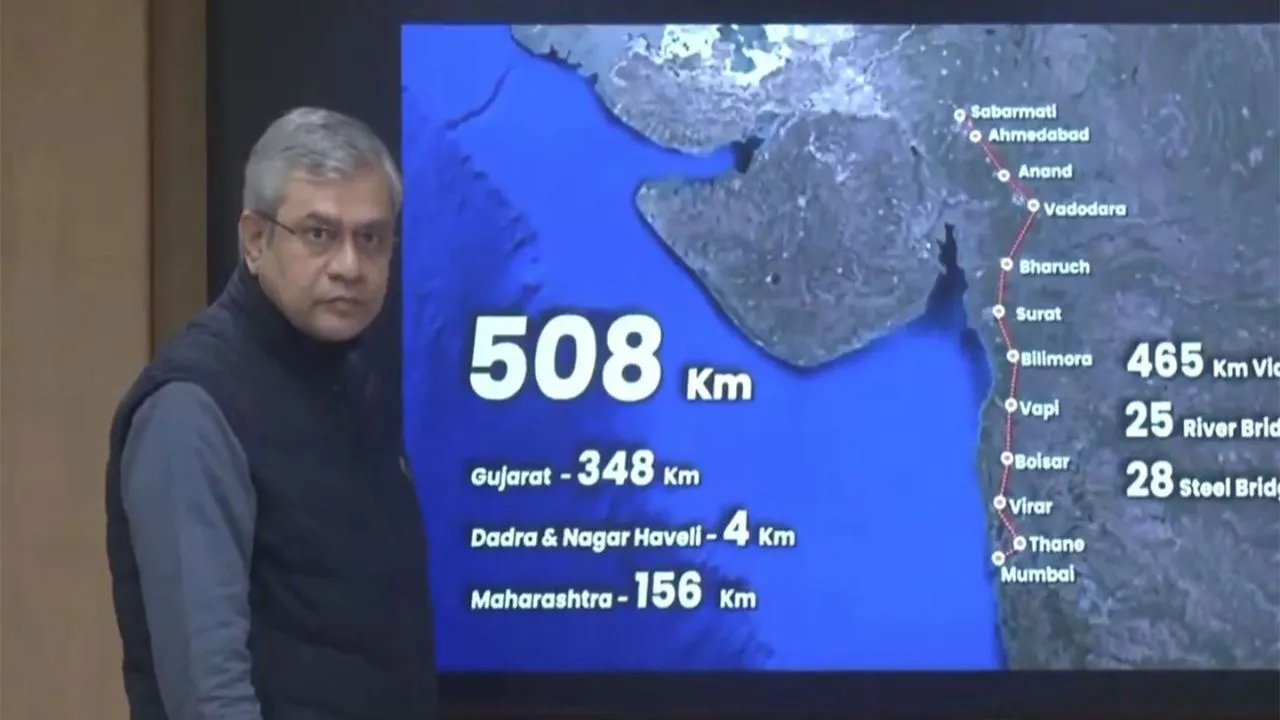 केंद्रीय रेल मंत्री ने कहा कि बुलेट ट्रेन परियोजना में कई इंजीनियरिंग चुनौतियां हैं, जिनमें सात पहाड़ी सुरंगें और एक समुद्र के नीचे सुरंग शामिल है। उन्होंने इसे भारत के आधुनिक रेलवे इंफ्रास्ट्रक्चर के लिए मील का पत्थर बताया।