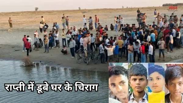 गोरखपुर। मुख्यमंत्री योगी आदित्यनाथ की कर्मभूमि गोरखपुर में एक हृदयविदारक घटना घटी है। यहां राप्ती नदी की लहरों ने चार मासूम जिंदगियों को अपने में समाहित कर लिया है। बुधवार की दोपहर को घर से नहाने निकले पांच दोस्तों में से चार काल के गाल में समा गए, जिससे गांव में कोहराम मच गया।