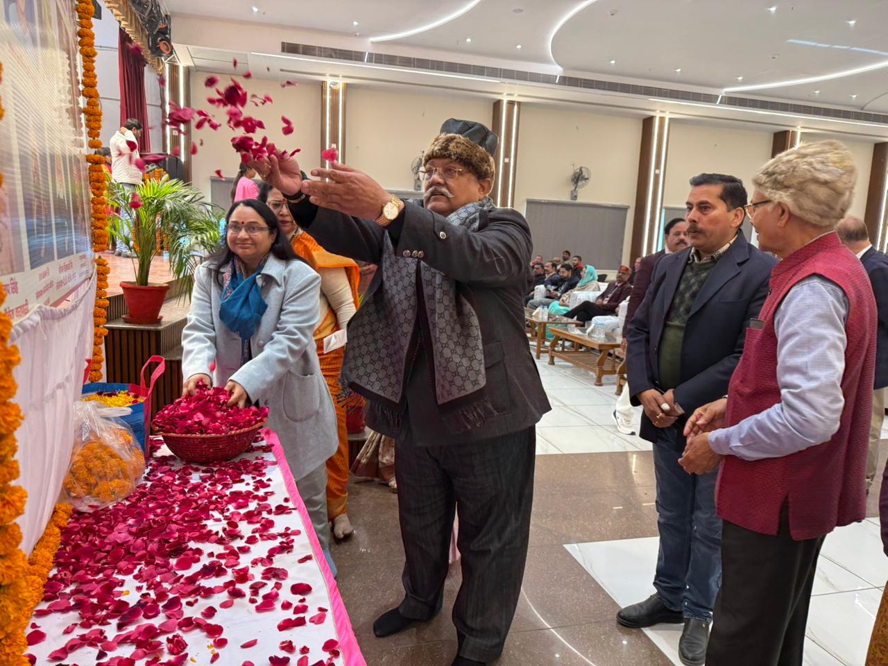 समारोह में प्राचीन से आधुनिक काल तक के 25 महान क्षत्रिय पुरोधाओं ऋषि विश्वामित्र, साध्वी सुलभा, भगवान महावीर, भगवान बुद्ध, भगवान राम, महाराज इक्ष्वाकु, महाराज मांधाता, महाराज भगीरथ, महाराज हरिश्चंद्र, महाराज अग्रसेन, सम्राट चंद्रगुप्त मौर्य, सम्राट अशोक, रानी दुर्गावती, सम्राट हर्षवर्धन, महाराज सुहेलदेव, वीर कुंवर सिंह, क्रांतिकारी बंधू सिंह, राणा वेणी माधव सिंह बैस, महाराज गंगा सिंह (बीकानेर), वीर चंद्र सिंह गढ़वाली, राजा उदय प्रताप सिंह, राजा बलवंत सिंह, श्रीमंत तिलकधारी सिंह, राजा युवराज दत्त सिंह तथा राजा वीरेंद्र बहादुर सिंह-रानी पद्मावती को पुष्पांजलि अर्पित की गई।कार्यक्रम की शुरुआत 25 पुरोधाओं के चित्रों पर पुष्पांजलि, दीप प्रज्ज्वलन और सरस्वती वंदना से हुई। बड़ी संख्या में गणमान्य नागरिकों की उपस्थिति ने आयोजन को गरिमामय बनाया।