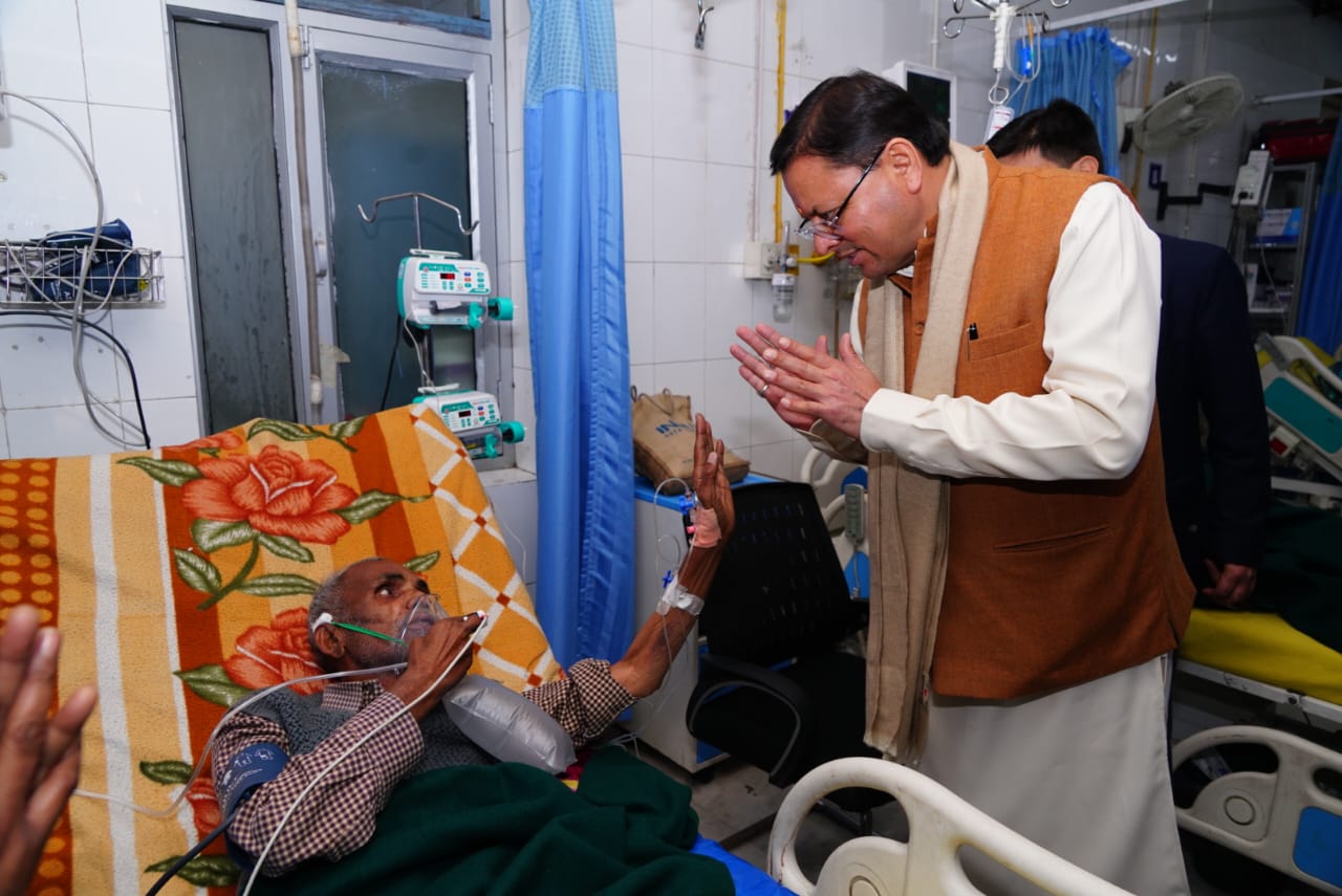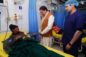 देहरादून। मुख्यमंत्री पुष्कर सिंह धामी ने शुक्रवार को राजकीय दून मेडिकल कॉलेज पहुंचकर उत्तराँचल प्रेस क्लब के अध्यक्ष भूपेन्द्र कंडारी का हालचाल जाना। मुख्यमंत्री ने चिकित्सकों से कंडारी के स्वास्थ्य के बारे में जानकारी ली और उनके शीघ्र स्वस्थ होने की कामना की।