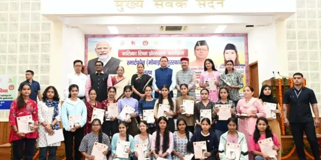 देहरादून। मुख्यमंत्री पुष्कर सिंह धामी ने मुख्यमंत्री कैंप कार्यालय स्थित मुख्य सेवक सदन में अंतरराष्ट्रीय बालिका दिवस के अवसर पर आयोजित बालिका शिक्षा प्रोत्साहन कार्यक्रम में प्रतिभाग किया। महिला सशक्तिकरण एवं बाल विकास विभाग द्वारा आयोजित इस कार्यक्रम में राज्य की 326 मेधावी बालिकाओं को स्मार्टफोन प्रदान किए गए।कार्यक्रम में जनपद स्तर पर हाईस्कूल एवं इंटरमीडिएट परीक्षा की प्रथम तीन टॉपर बालिकाओं तथा विकासखण्ड स्तर की टॉपर बालिकाओं को मुख्यमंत्री ने सम्मानित किया।