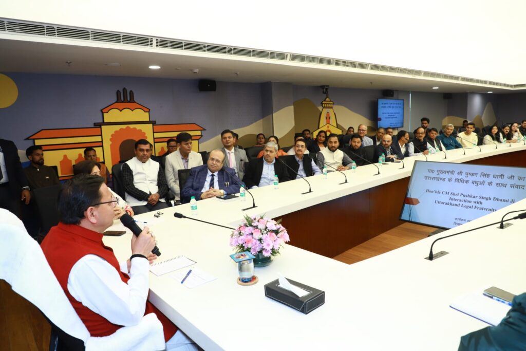 नई दिल्ली। नई दिल्ली स्थित उत्तराखण्ड निवास में उत्तराखण्ड राज्य की रजत जयंती वर्ष के अवसर पर मुख्यमंत्री पुष्कर सिंह धामी ने प्रवासी उत्तराखण्डी अधिवक्ताओं के साथ संवाद किया। इस दौरान उन्होंने राज्य के विकास हेतु अधिवक्ताओं के साथ गहन विचार-मंथन किया। इस दौरान उन्होंने कानून व्यवस्था को सुदृढ़, पारदर्शी और प्रभावी बनाने के लिए सरकार द्वारा किए जा रहे प्रयासों और नीतिगत पहलों की जानकारी साझा की।
