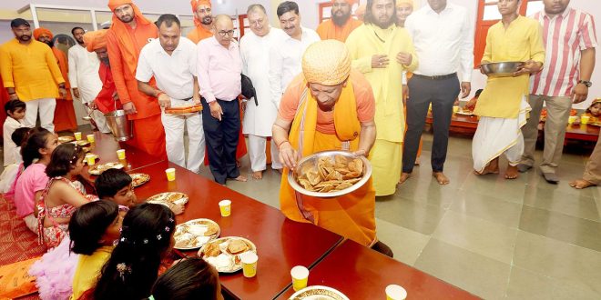 कन्याओं व बटुकों को अपने हाथों से भोजन परोसा मुख्यमंत्री ने