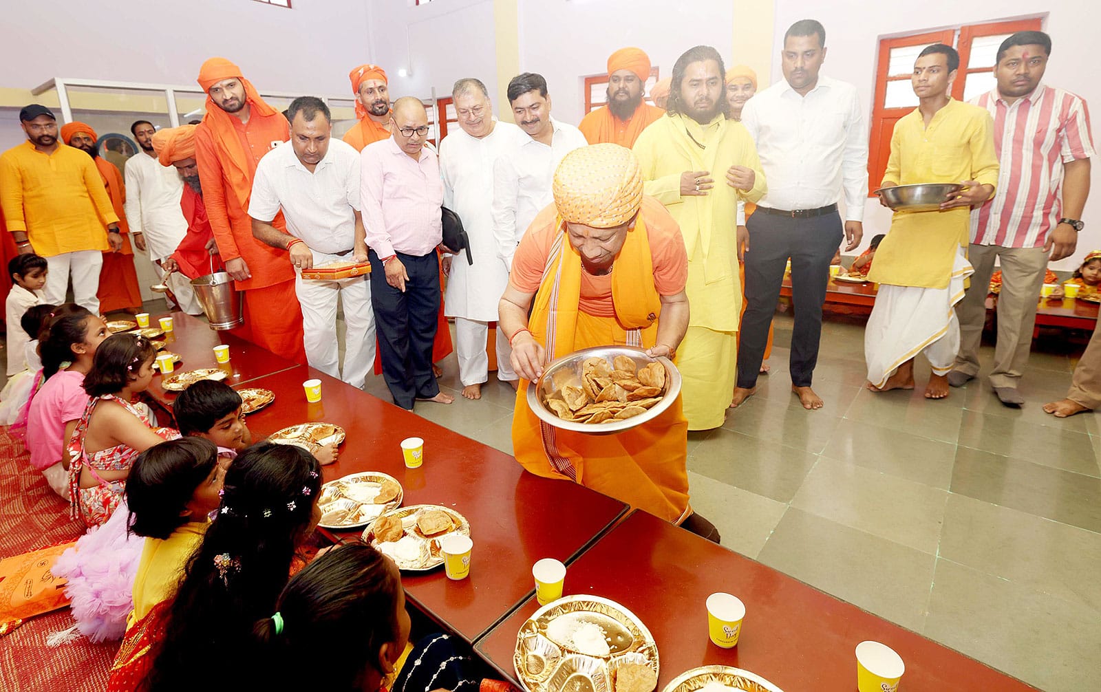 पूजन के बाद कन्याओं और बटुकों को मंदिर की रसोई में पकाया गया ताजा भोजन प्रसाद सीएम योगी ने अपने हाथों से परोसा। नौ कन्याओं के अतिरिक्त बड़ी संख्या में पहुंची बालिकाओं और बटुकों का भी मुख्यमंत्री ने पूजन कर आरती उतारी। सभी को श्रद्धापूर्वक भोजन कराकर उपहार व दक्षिणा दिया गया।