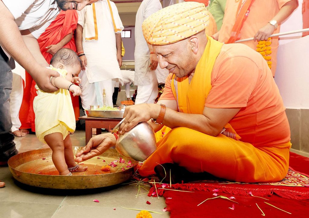 अपने महराज जी (सीएम योगी आदित्यनाथ) का प्यार-दुलार पाने के लिए नन्हीं बालिकाओं व बटुकों की आतुरता देखते ही बन रही थी।