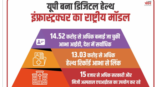 स्वास्थ्य सचिव रितु माहेश्वरी ने बताया कि प्रदेश में एबीडीएम को कोर हेल्थ डीपीआई लेयर के रूप में लागू किया गया है। अब तक प्रदेश में 14.52 करोड़ से अधिक आभा आईडी बनाई जा चुकी हैं, जो देश में सर्वाधिक हैं। इसके साथ ही 70 हजार से अधिक स्वास्थ्य संगठनों और 1.04 लाख से ज्यादा हेल्थ प्रोफेशनल्स एबीडीएम के तहत पंजीकृत हो चुके हैं। डिजिटल हेल्थ रिकॉर्ड के क्षेत्र में भी यूपी ने ऐतिहासिक उपलब्धि हासिल की है। 13.03 करोड़ से अधिक हेल्थ रिकॉर्ड आभा से लिंक किए जा चुके हैं, जिससे मरीजों का संपूर्ण चिकित्सा इतिहास एक ही डिजिटल प्लेटफॉर्म पर सुरक्षित उपलब्ध है।