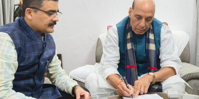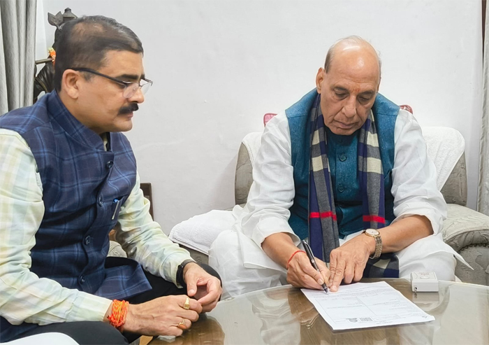 अधिकारियों ने बताया कि लखनऊ से सांसद राजनाथ सिंह ने अपने आवास पांच-ए कालिदास मार्ग पर एक संक्षिप्त बातचीत के दौरान उप जिलाधिकारी (एसडीएम) मनोज सिंह को भरा हुआ एसआईआर फॉर्म सौंपा।