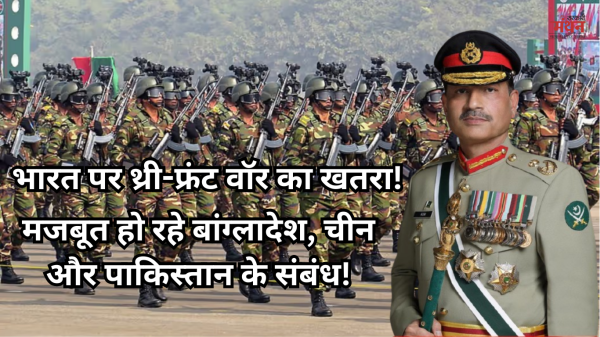 इस्लामाबाद। वर्तमान समय में भारत के तीन पड़ोसी मुल्क एक साथ खड़े होते नजर आ रहे है, जिससे थ्री-फ्रंट वॉर (पाकिस्तान, चीन और बांग्लादेश) का खतरा तेजी से बढ़ता हुआ नजर आ रहा है। चीन और पाकिस्तान तो पहले से ही भारत के दुश्मन थे, अब इन्हें बांग्लादेश का भी साथ मिल गया है। जी हां शेख हसीना सरकार के तख्तापलट के बाद से लगातार पाकिस्तान और बांग्लादेश के सबंधों में सुधार हो रहा है। अब एक तस्वीर में पाकिस्तान के फील्ड मार्शल असीम मुनीर बांग्लादेशी सैनिकों का दिल खोलकर स्वागत करते नजर आ रहे हैं।