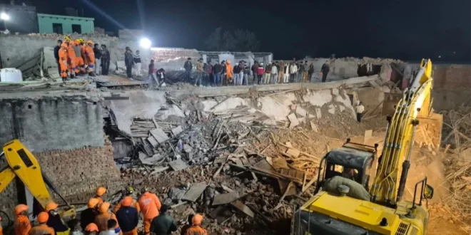 नोएडा। उत्तर प्रदेश में गौतमबुद्धनगर जिले के थाना रबूपुरा क्षेत्र में निर्माणाधीन तीन मंजिला मकान की शटरिंग खोलते समय बुधवार को छत गिरने की घटना में मारे गए मजदूरों की संख्या बढ़कर चार हो गई है। पुलिस ने बताया कि छत गिरने के बाद मजदूरों को राष्ट्रीय आपदा मोचन बल (एनसीआरएफ) और राज्य आपदा मोचन बल (एसडीआरएफ) की सहायता से मलबे से बाहर निकालकर अस्पताल में भर्ती कराया गया था। पुलिस ने पहले एक मजदूर की मौत होने की जानकारी दी थी।