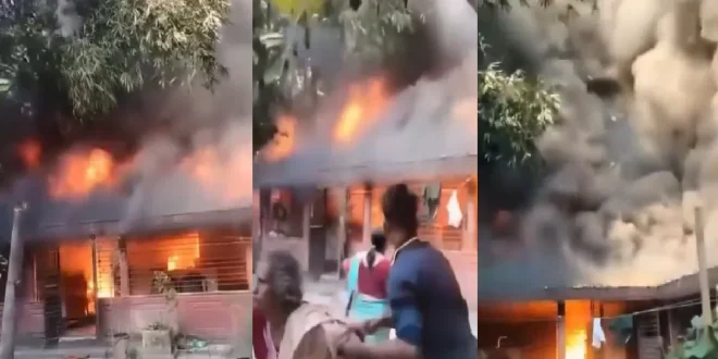 घटना का वीडियो भी सामने आया है, जिसमें साफ देखा जा सकता है कि आग लगते ही लपटें पूरे घर में फैल जाती हैं। परिवार के सदस्य घबराहट में घर से बाहर निकलते नजर आ रहे हैं। कुछ ही देर में मकान पूरी तरह जलकर खाक हो गया। इस हमले के बाद इलाके में दहशत का माहौल है और हिंदू परिवारों में डर गहराता जा रहा है।