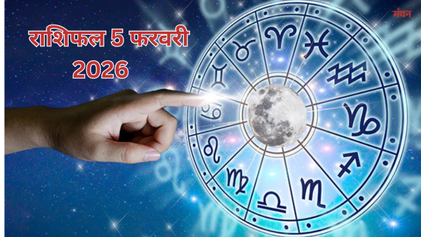 राशिफल 5 फरवरी, 2026: आज का दिन ग्रहों की विशेष चाल से भरा हुआ है! आज चंद्रमा कन्या राशि में विराजमान हैं और बुध-यूरेनस का वर्ग कोण सक्रिय है, तो बौद्धिक शक्तियां चरम पर रहेंगी। सोचने-समझने का तरीका तेज़ होगा, पुरानी उलझनें सुलझेंगी और कामकाज में व्यवस्थित दृष्टिकोण अपनाने का सुनहरा मौका मिलेगा। मेष, सिंह और धनु जैसी अग्नि तत्व वाली ऊर्जावान राशियों के लिए यह दिन स्वयं को ऑर्गनाइज़ करने, कड़ी मेहनत की ठोस नींव रखने और लक्ष्यों की ओर मजबूती से बढ़ने का शानदार अवसर है।