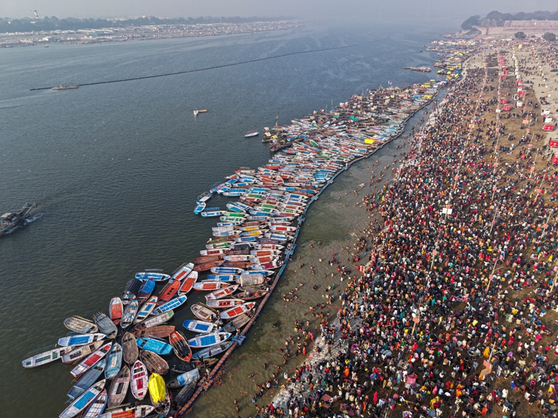 प्रयागराज। प्रयागराज के संगम तट पर आयोजित माघ मेले के दूसरे स्नान पर्व मकर संक्रांति से पूर्व, बुधवार को एकादशी पर सुबह छह बजे तक नौ लाख से अधिक श्रद्धालुओं ने यहां गंगा और संगम में आस्था की डुबकी लगाई।यह जानकारी देते हुए पुलिस अधीक्षक (माघ मेला) नीरज पांडेय ने बताया कि आज भोर से ही स्नान प्रारंभ है। मकर संक्रांति का स्नान पर्व 15 जनवरी को है, लेकिन आज एकादशी से ही स्नान प्रारंभ है।