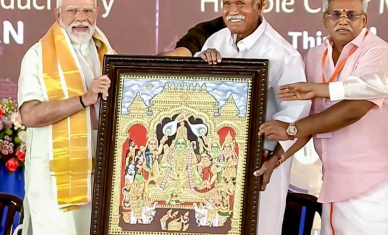 पुडुचेरी। प्रधानमंत्री नरेन्द्र मोदी का पुडुचेरी पहुंचने पर रविवार को जोरदार स्वागत किया गया और उन्होंने यहां बुनियादी ढांचे, शहरी सेवाओं, औद्योगिक विकास, शिक्षा, स्वास्थ्य सेवा तथा सतत विकास को मजबूत करने के मकसद से 2,700 करोड़ रुपये से अधिक की विकास परियोजनाओं की शुरुआत की।पुडुचेरी के मुख्यमंत्री एन. रंगासामी ने प्रधानमंत्री को एक शॉल, भगवान मुरुगन की चांदी की मूर्ति, चांदी का भाला (वेल) और तंजावुर की एक चित्रकला भेंट की।