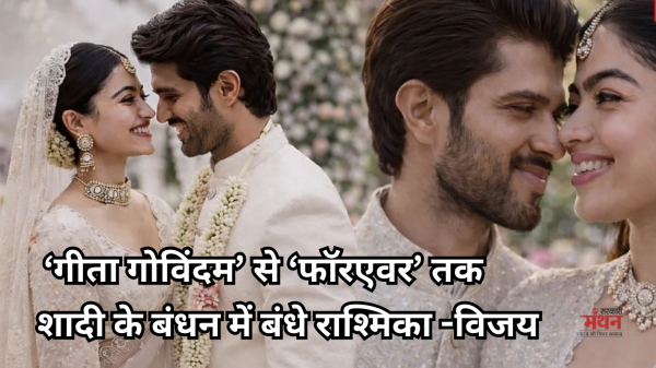 गुरुवार की सुबह करीब 10 बजे तेलुगु रीति-रिवाजों से विवाह संपन्न हुआ। इसके बाद शाम लगभग चार से पांच बजे के बीच कोडावा परंपराओं के साथ दूसरी रस्में निभाई गईं। यह शादी इंडस्ट्री के लिए ‘वेडिंग ऑफ द ईयर’ बन गई है। रश्मिका और विजय ने सालों तक अपने रिलेशनशिप को प्राइवेट रखा। इन्होंने फरवरी 2026 में यानी इसी महीने में अपने रिश्ते को सार्वजनिक किया और शादी की आधिकारिक घोषणा। इस ऐलान को सुनकर दोनों कलाकारों के फैन्स उत्साहित हो गये।