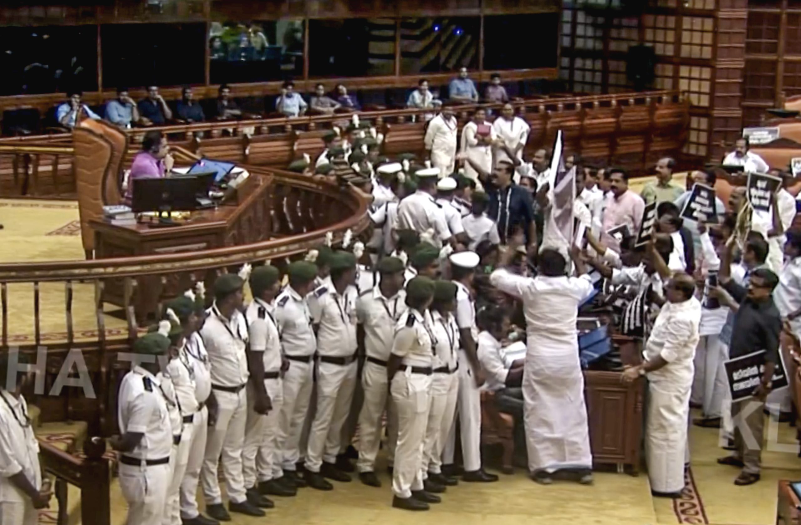 तिरुवनंतपुरम( केरल विधानसभा में बुधवार को नाटकीय घटनाक्रम में कांग्रेस के नेतृत्व वाले विपक्षी संयुक्त लोकतांत्रिक मोर्चा (यूडीएफ) के सदस्यों और वॉच एंड वार्ड कर्मियों (सुरक्षाकर्मी) के बीच उस समय हाथापाई हुई, जब विधायक देवस्वओम मंत्री के इस्तीफे की मांग कर रहे थे।