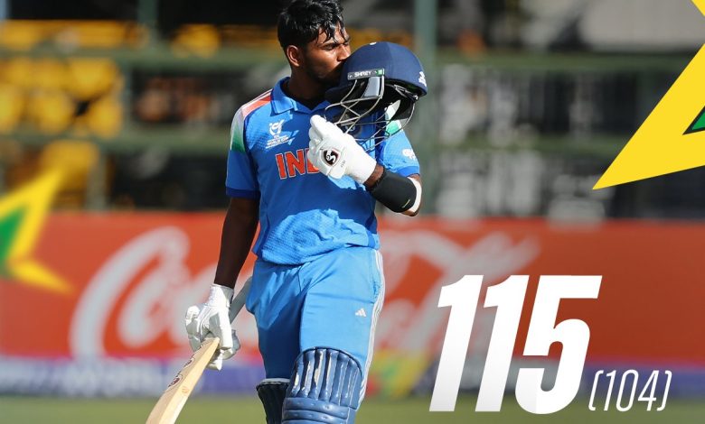 - भारत की जीत के हीरो सलामी बल्लेबाज एरॉन जॉर्ज रहे, जिन्होंने 104 गेंदों पर 115 रन की शानदार पारी खेली।