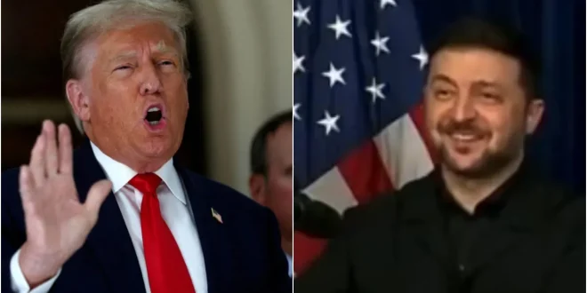 प्रेस के सामने ट्रंप ने कहा, “पुतिन यूक्रेन को कामयाब देखना चाहते हैं।” यह बात सुनते ही पास में खड़े राष्ट्रपति जेलेंस्की अपनी हंसी नहीं रोक पाए। यह पल कैमरे में कैद हो गया और देखते ही देखते सोशल मीडिया पर वायरल हो गया। लोग इस वीडियो पर तरह-तरह की प्रतिक्रियाएं दे रहे हैं।